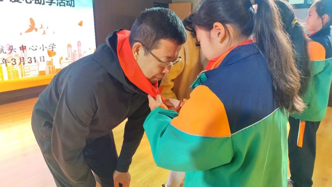 孩子們紛紛表示一定會(huì)努力學(xué)習(xí),用優(yōu)異的成績(jī)向葉叔叔證明自己?,F(xiàn)場(chǎng),受到鼓舞的孩子們向領(lǐng)導(dǎo)來(lái)賓敬獻(xiàn)紅領(lǐng)巾,致以少先隊(duì)最崇高的敬意。
