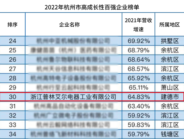 普林艾爾憑借高速發(fā)展之勢成功躋身2022杭州市高成長性百強(qiáng)企業(yè),名列榜單第30位。