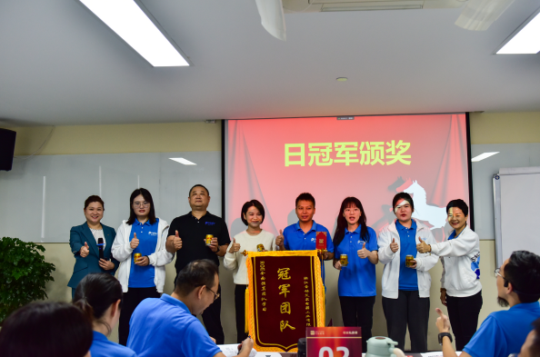 學(xué)練考賽是行動教育的課程特色,先學(xué)習(xí)、后訓(xùn)練、再比賽,通過這樣一個閉環(huán)可以讓知識得到鞏固并有效進(jìn)行落地。“上下同欲者勝,同心同行者贏”。通過比拼,每日都會產(chǎn)生日冠軍,最后一天角逐出了本次的總冠軍團(tuán)隊和優(yōu)秀學(xué)員。
