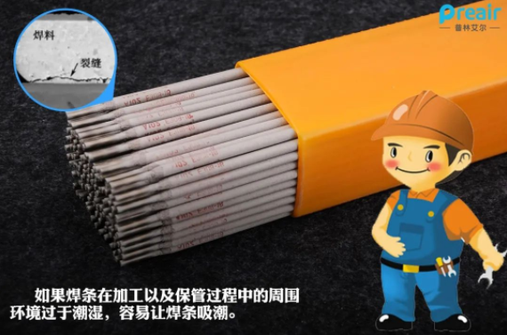 出廠的焊條已經(jīng)經(jīng)過高溫烘干,并用防潮材料(如塑料袋、紙盒等)加以包裝,在一定程度上可防止藥皮受潮。但實踐證明,焊條在保管過程中吸潮性較大,吸潮的程度與儲存的環(huán)境溫度、濕度、時間以及藥皮有機(jī)物的含量及類型、膠黏劑的含量與質(zhì)量、焊條制造工藝過程和包裝質(zhì)量等因素有關(guān)。