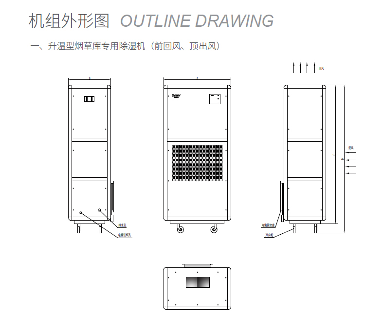 注: 1、除濕量標(biāo)定工況:進(jìn)風(fēng)干球溫度27℃,相對濕度60%; 2、噪聲測定:按規(guī)定接上風(fēng)管后,在距機(jī)組正面2米處測得; 3、帶“B”的機(jī)組為低溫型機(jī)組,適用溫度范圍5~32℃。 |